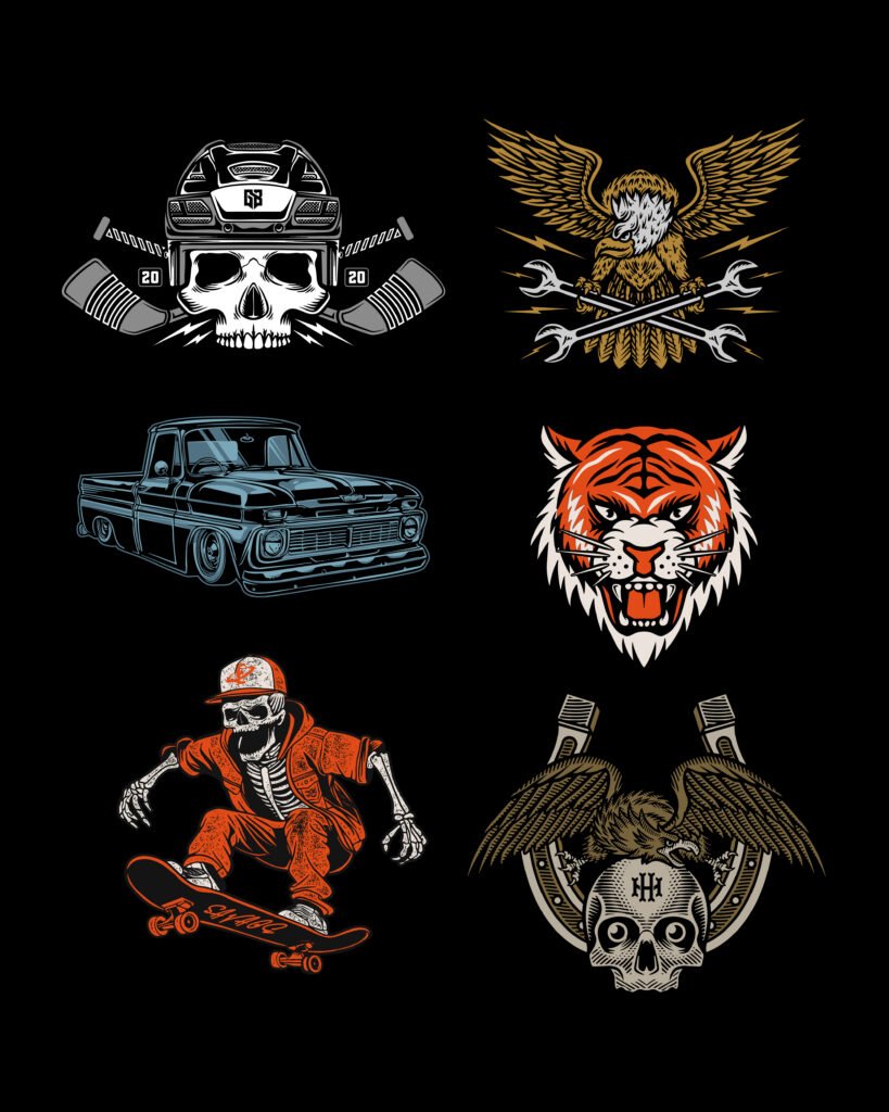 I design custom logos, badges, and marks with strong character and bold typography. Built to work across packaging, apparel, and branding—clear, confident, and easy to recognize.